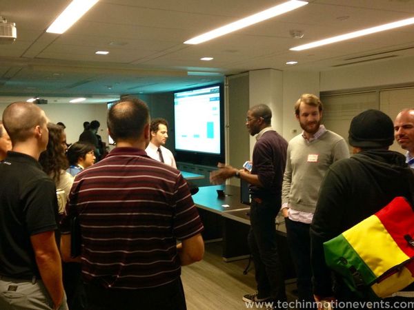 The demos event took place at the Advisory Board Company, a modern-style office located in the heart of Washington. Members of Tech in Motion DC’s community, including entrepreneurs, developers, product and project managers, systems and network engineers, designers, and marketers all began arriving at 6:00 pm; attendees began filing into the board room suite that allowed the demo companies to set up their presentations and interact with the 100+ engaged attendees comfortably. Refreshments flowed abundantly at a bar located in the back of the room.