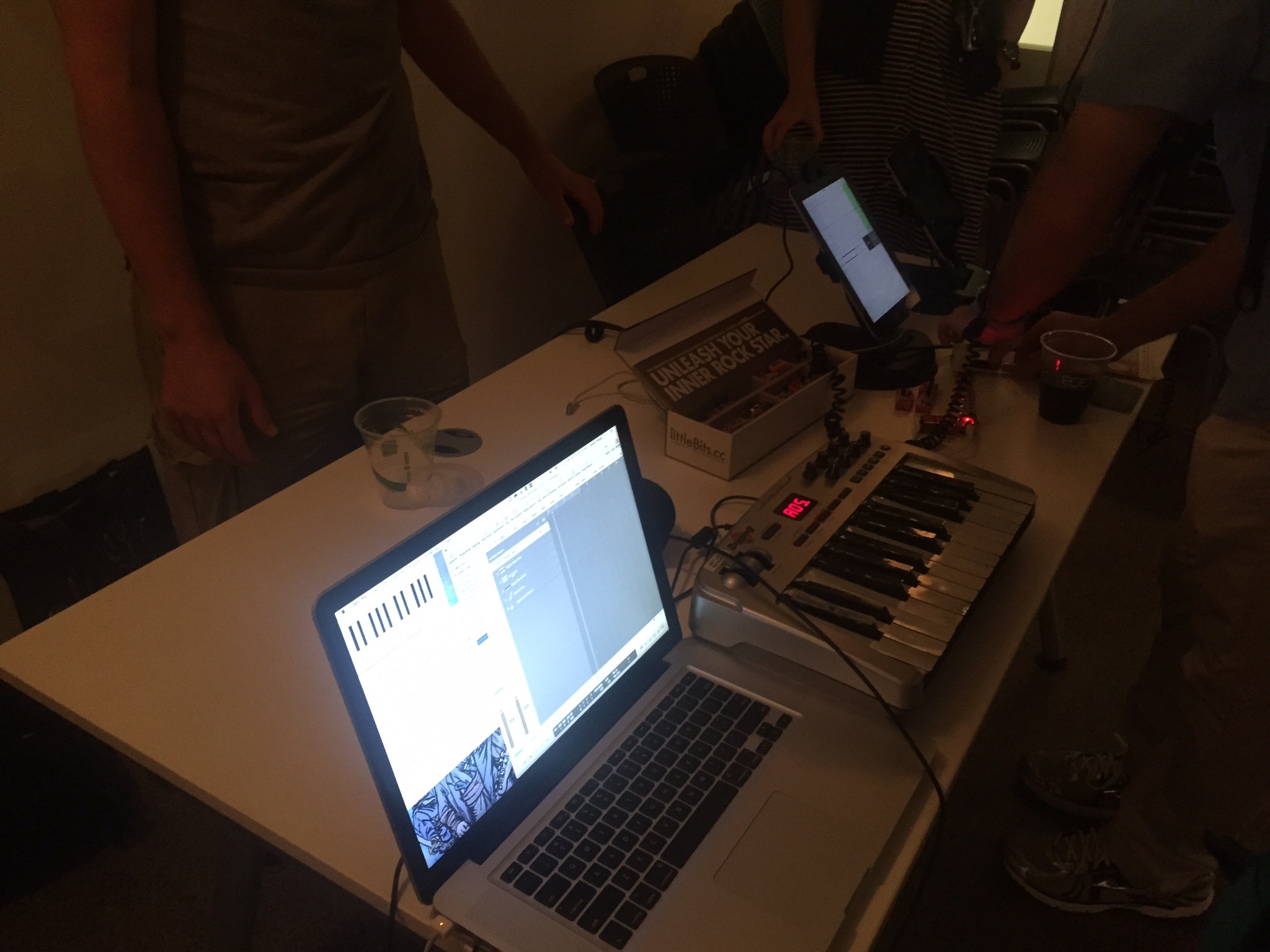 Rob Hardcastle of DYIM came out to exhibit his social music experience. The device lights up in different colors throughout the evening as attendees came by to try it out. This innovation allows people who might not be so musically inclined to create sounds through simply pressing different buttons. The creator, Hardcastle, says that DYIM really "allows people with no musical experience to express their musical thoughts and dreams."