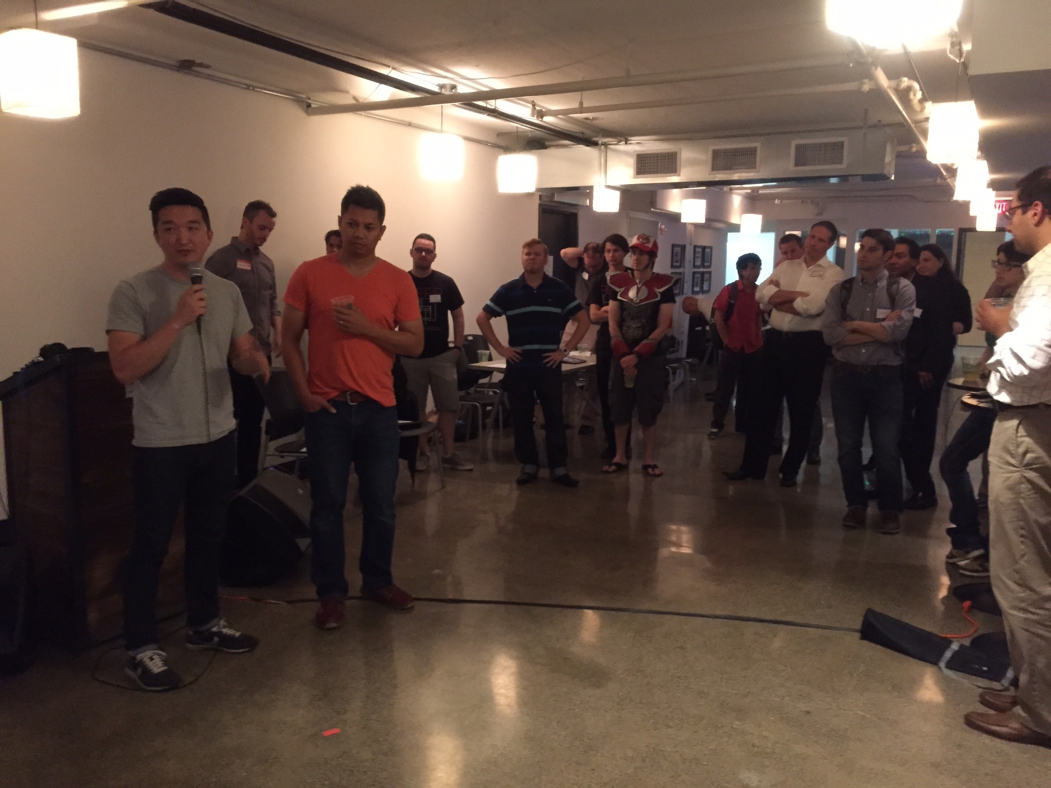 Below, Edge of Nostalgia founder presented his app to the audience during the lightning round introductions. Throughout the evening, he showed off how to turn ambient noise into interactive sound and eventually a type of music.